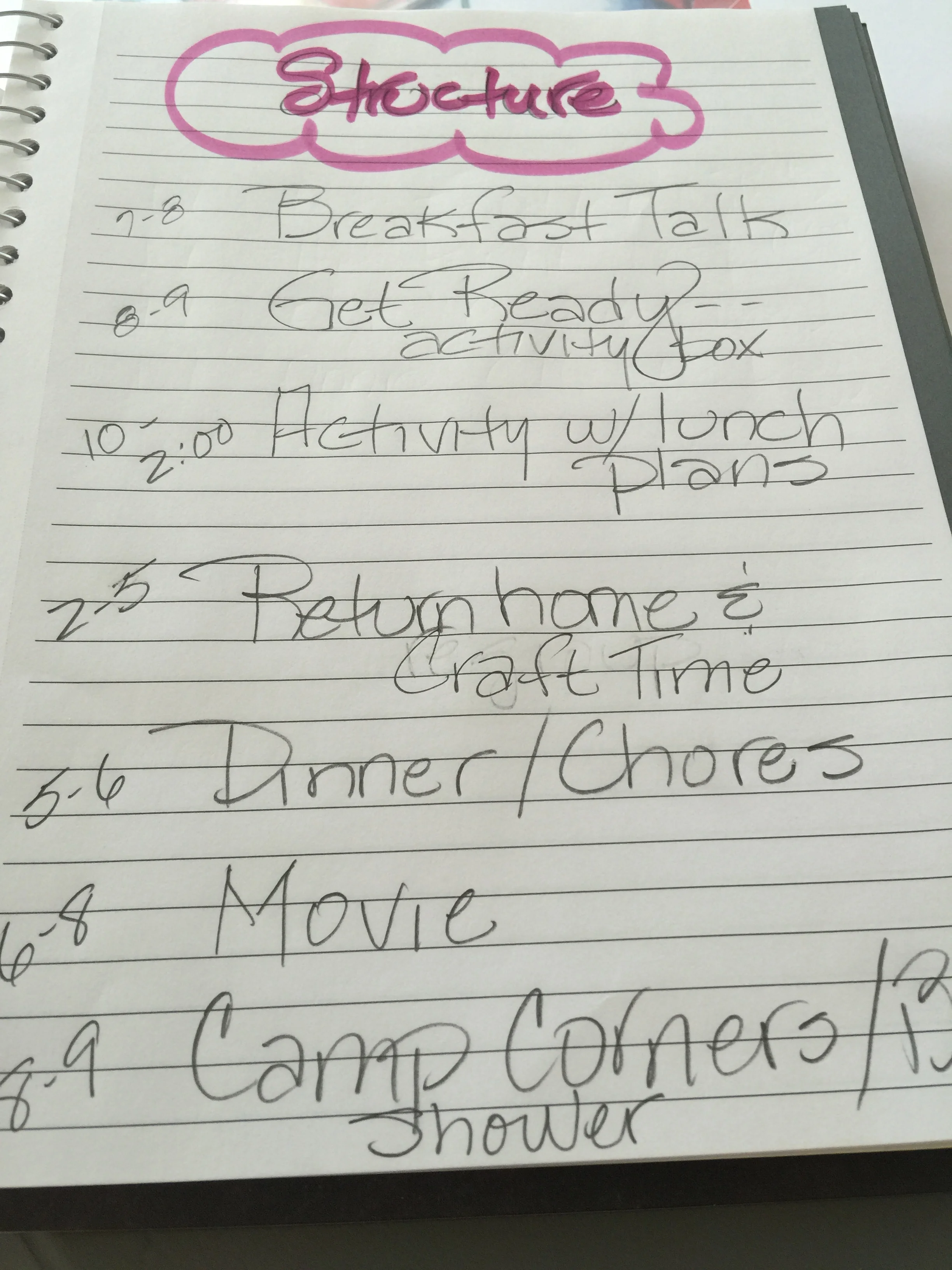 This third Plan It! step creates a daily schedule -- which is a life saver -- for your Gramma Cammp©. The Planning SCHEDULE Pages will help you build your daily schedule and funnel all of the work you’ve done so far into a meaningful and doable timetable.